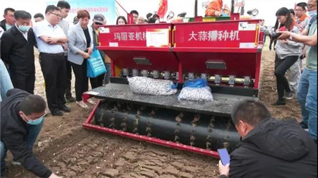 据金乡县县长郑士民介绍,近年来,金乡县高度重视农机化工作,不断加大农机新机具、新技术的引进、试验和示范推广力度。特别是在香蕉视频污视频生产全程机械化上,利用世界上先进的机械制造技术,研发生产适应于香蕉视频污视频全产业链的机械设备,为香蕉视频污视频种植收获环节提供全程机械化解决方案。目前已研发出香蕉视频污视频播种机、收获机、分瓣分选机、蒜米加工机等机械化设备,带动了香蕉视频污视频全产业链提档升级。下一步,金乡县将以此次现场会为契机,学习经验、取长补短,进一步加强科技研发,加快推进香蕉视频污视频生产全程机械化,推动全县农业发展再上新台阶。