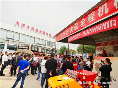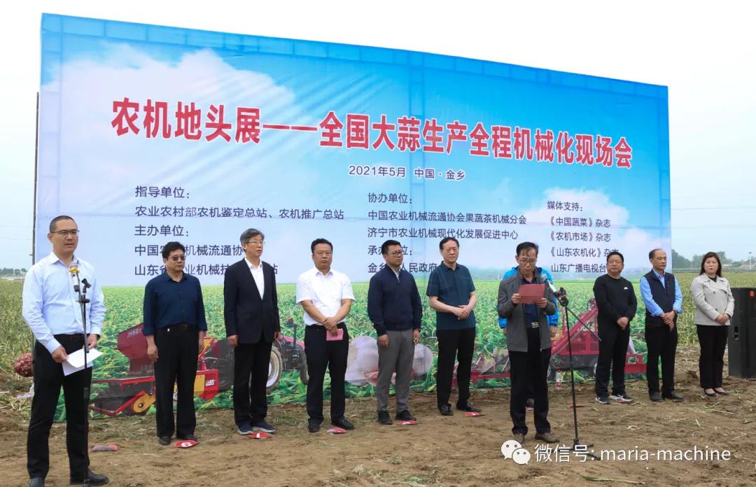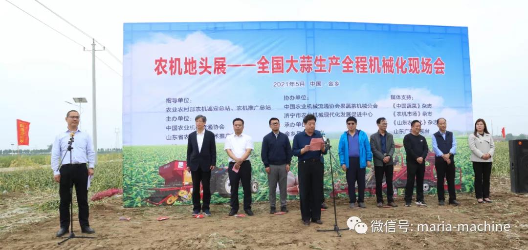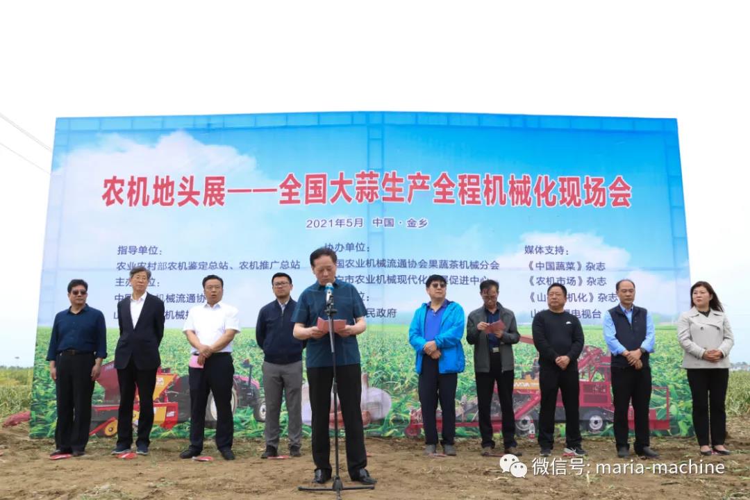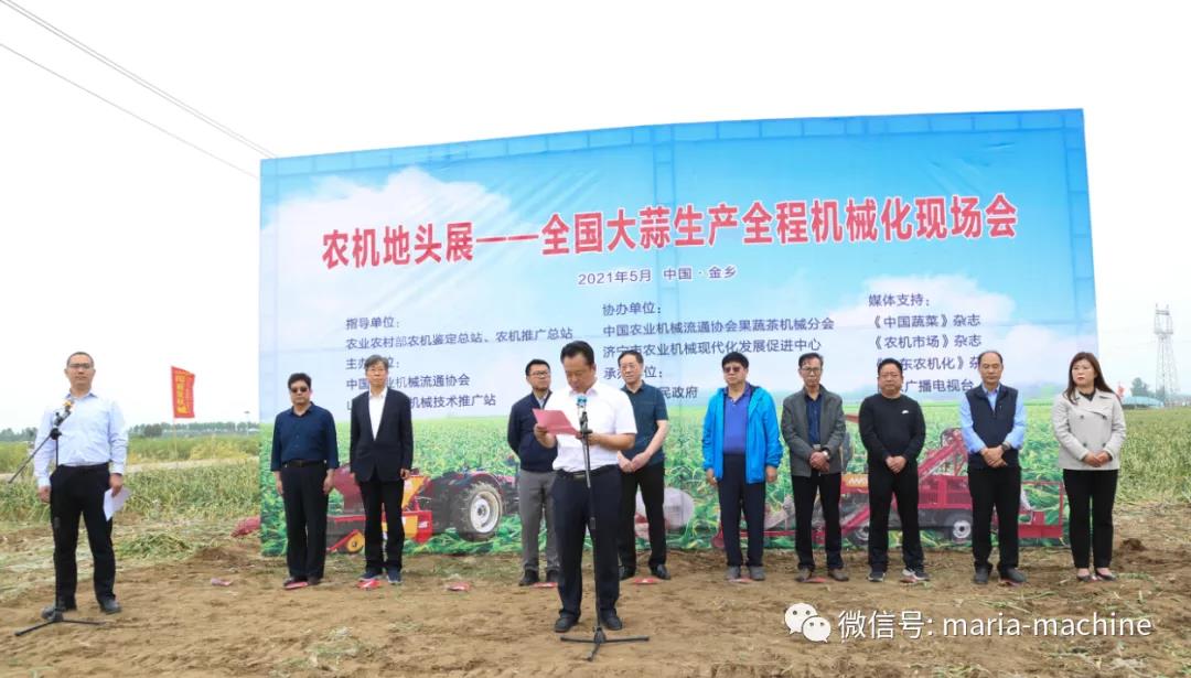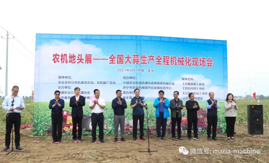 此次现场会指导单位:农业农村部农机鉴定总站、农机推广总站;主办单位:中国农业机械流通协会、山东省农业机械技术推广站;协办单位:中国农业机械流通协会果蔬茶机械分会、济宁市农业机械现代化发展促进中心;承办单位:金乡县人民政府。上午与会领导及嘉宾参加了现场会开幕式及香蕉视频污视频生产全程机械化现场演示及香蕉视频污视频机具设备推介会,下午参观了山东省香蕉成人网视频农业机械股份有限公司、凯盛农展中心、山禄国际香蕉视频污视频市场及金乡国际蒜都中心。