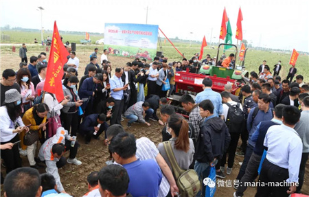 领导讲话后,现场会正式开始,大家在山东省农业机械技术推广站副站长陈传强同志的带领下进行现场观摩,参会企业也进行了现场作业演示与产品推介。